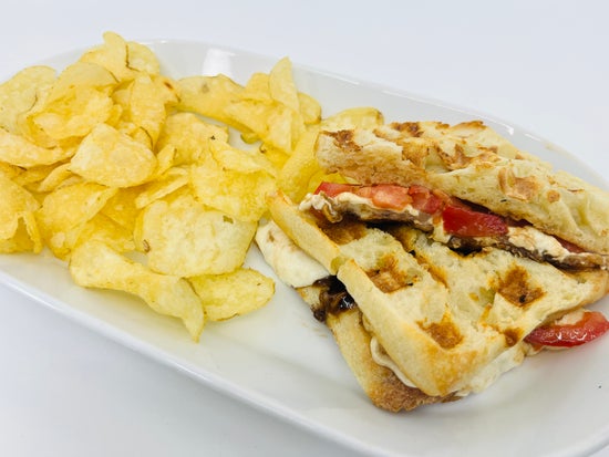 Skip to contentA classic Italian sandwich, the Caprese Panini includes buffalo mozzarella, roma tomatoes and balsamic glaze. Grilled on crusty ciabatta bread, it’s a simple yet stunning celebration of flavors. Served with kettle chips